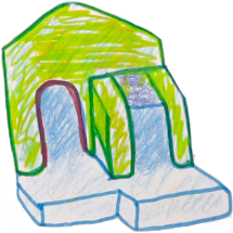eine neue, kompakte Hüpfburg (3x4 Meter), die von zwei Übungsleiter:innen problemlos auf- und abgebaut werden kann